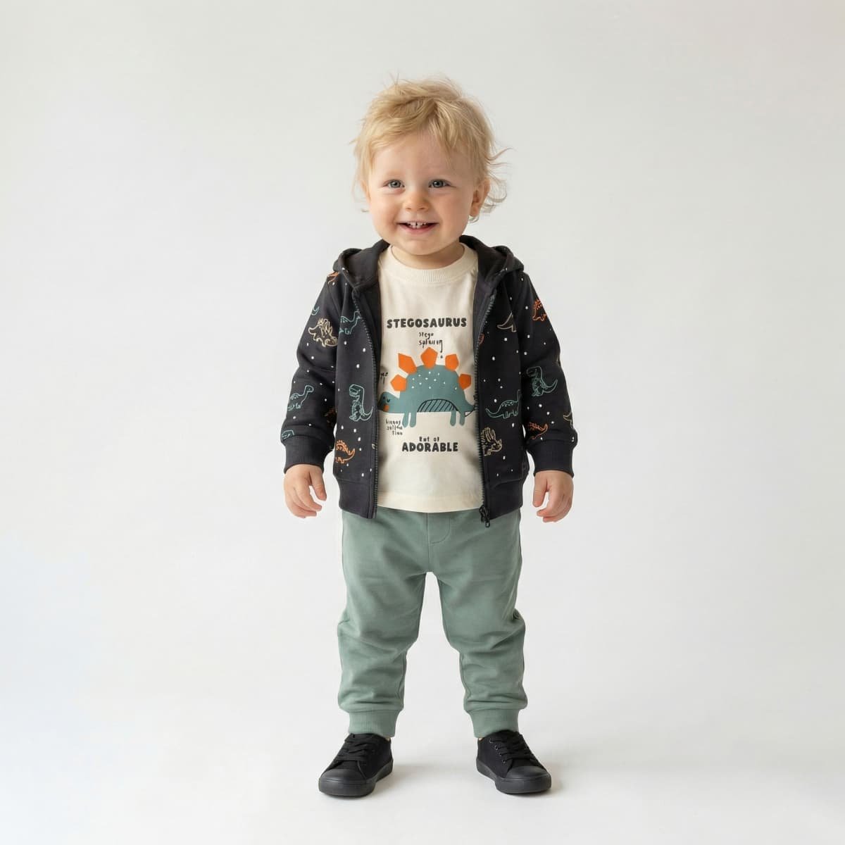 Το ανθρακί σετ δεινόσαυρος σύνολο συνδυάζει πρακτικότητα, μαλακή αίσθηση και casual ύφος για βόλτα, παιχνίδι και κάθε μέρα.