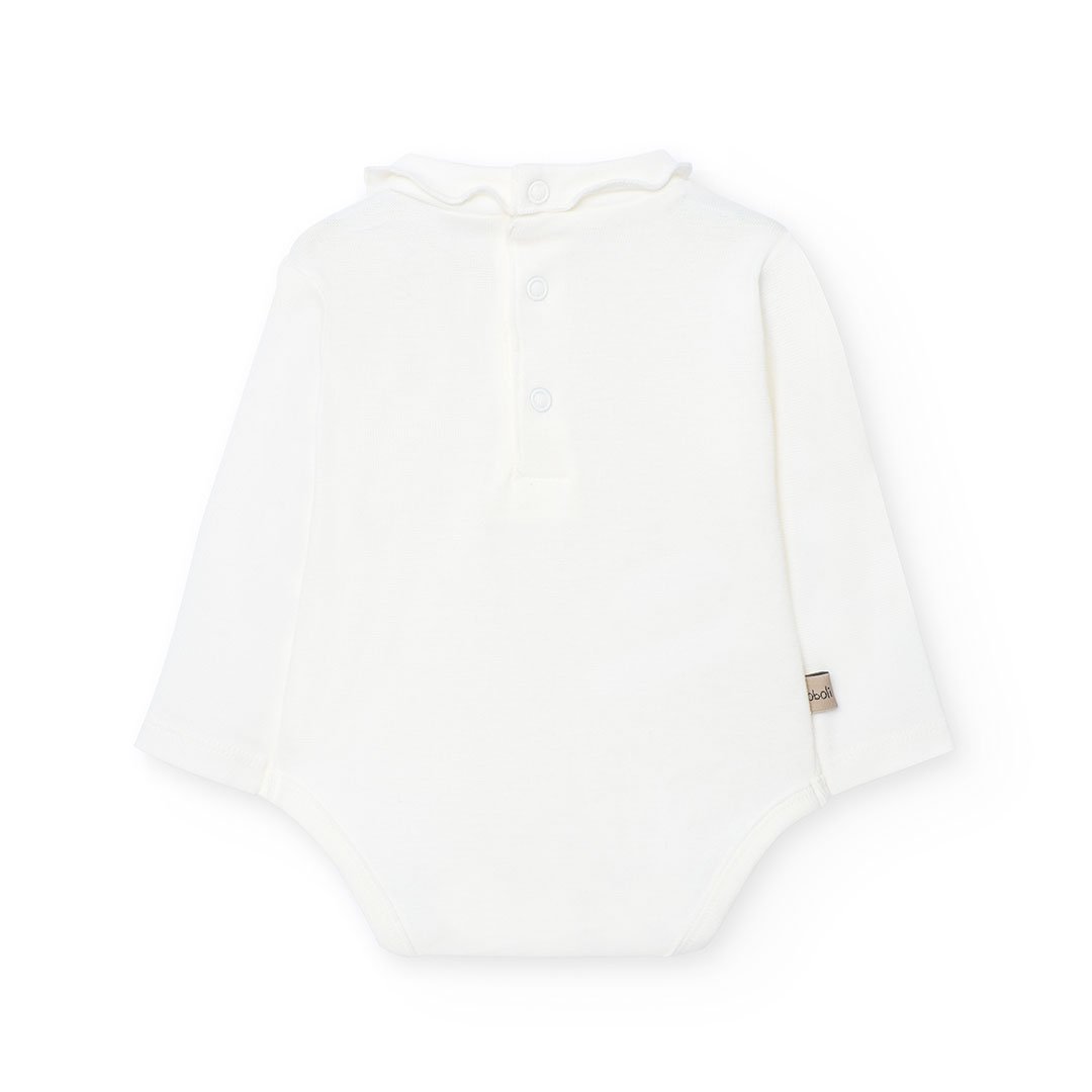 - Κορμάκι λευκό με μακρύ μανίκι και κουμπώματα πλάτης/καβάλου