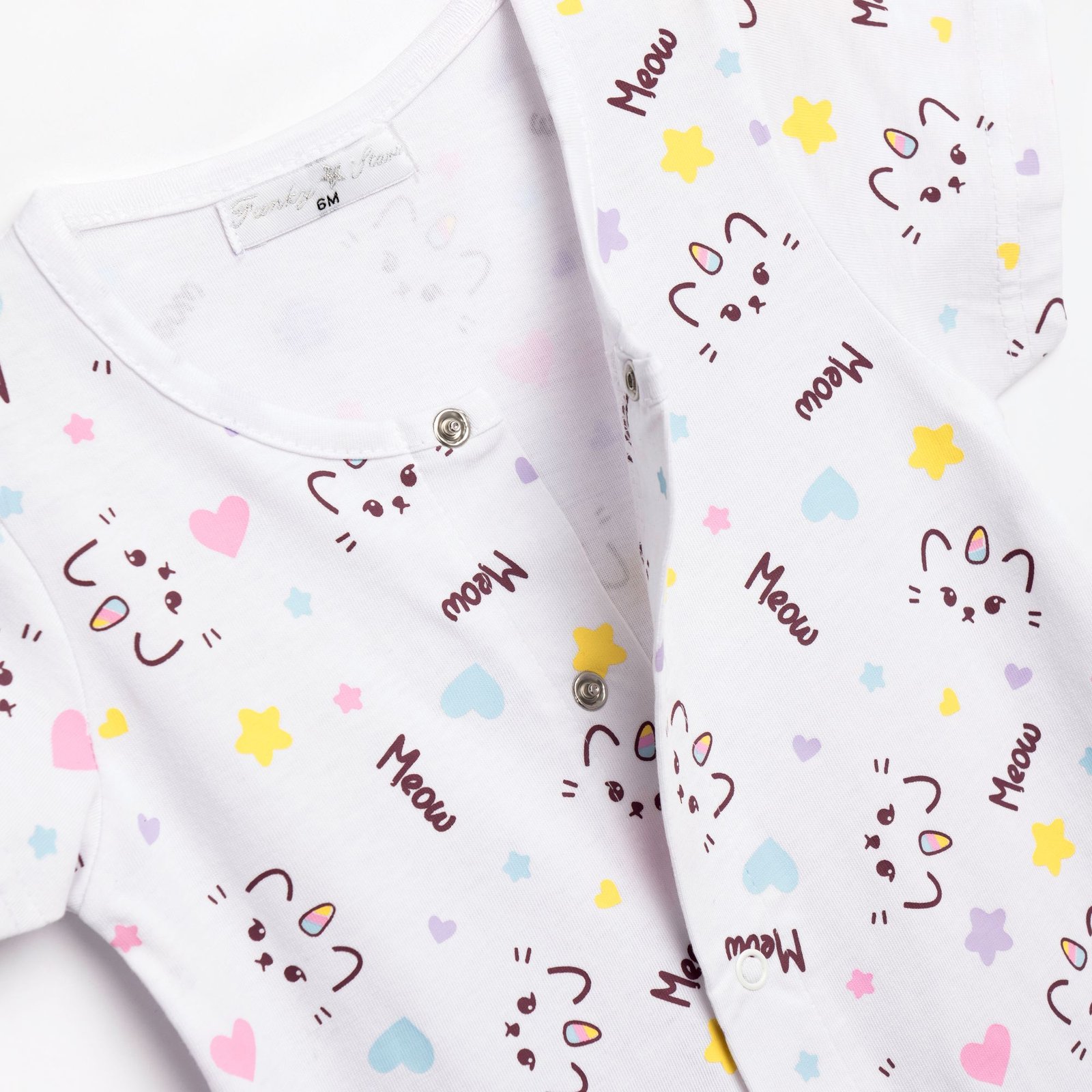 Βρεφικό Φορμάκι Meow Funky – Λευκό με Πολύχρωμο Print