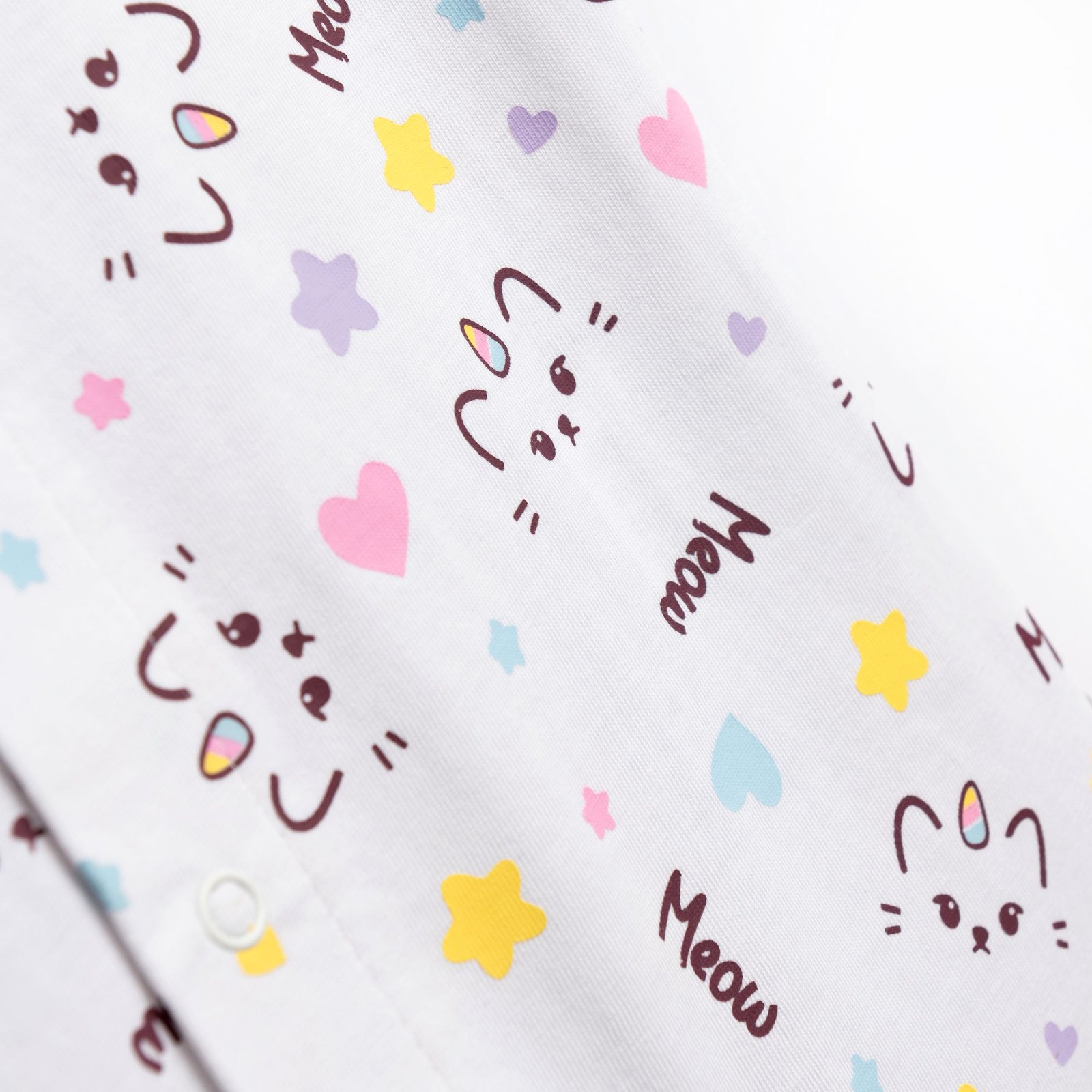 Ξεχωρίζει με λευκή βάση και all over print με γατούλες, καρδιές, αστεράκια και παιχνιδιάρικες λεπτομέρειες.