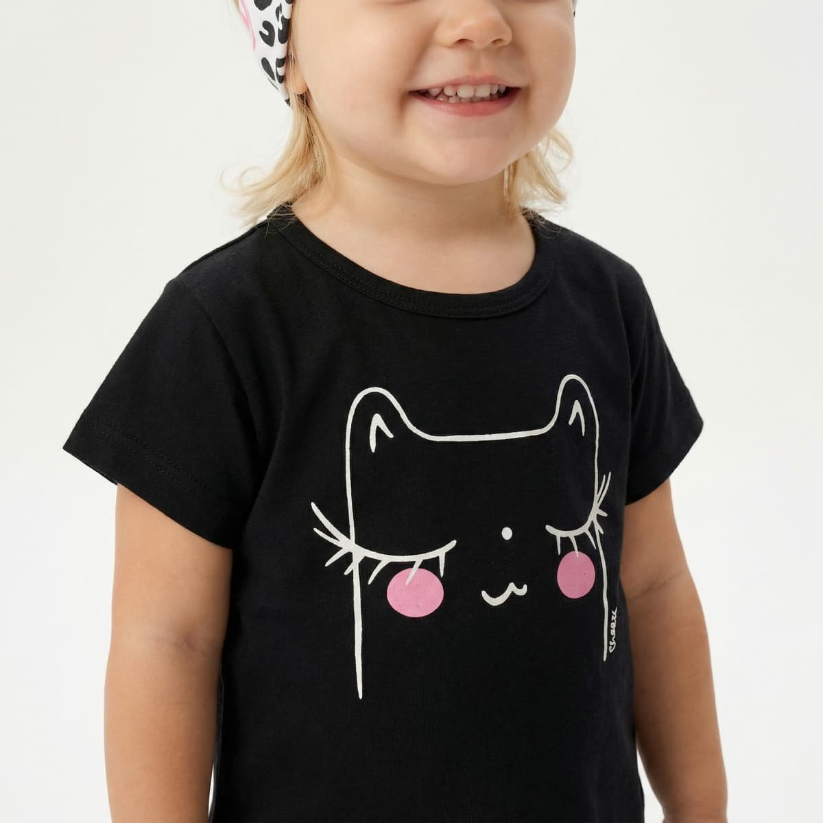 Η μπλούζα ξεχωρίζει με γλυκιά στάμπα γατούλας μπροστά και δίνει παιχνιδιάρικο ύφος στο σύνολο.