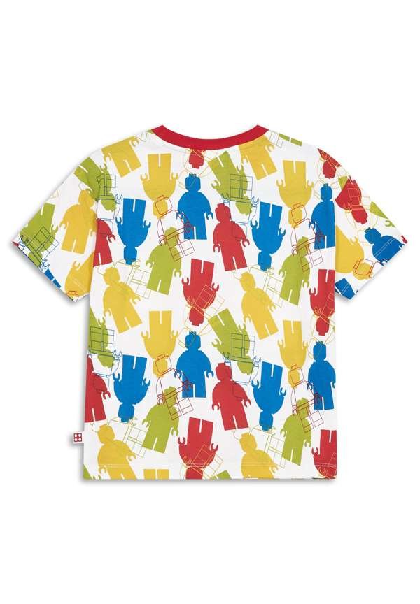Λευκή κοντομάνικη μπλούζα για αγόρι με πολύχρωμο print από LEGO φιγούρες. 100% βαμβακερή και ιδανική για άνετες καθημερινές εμφανίσεις.