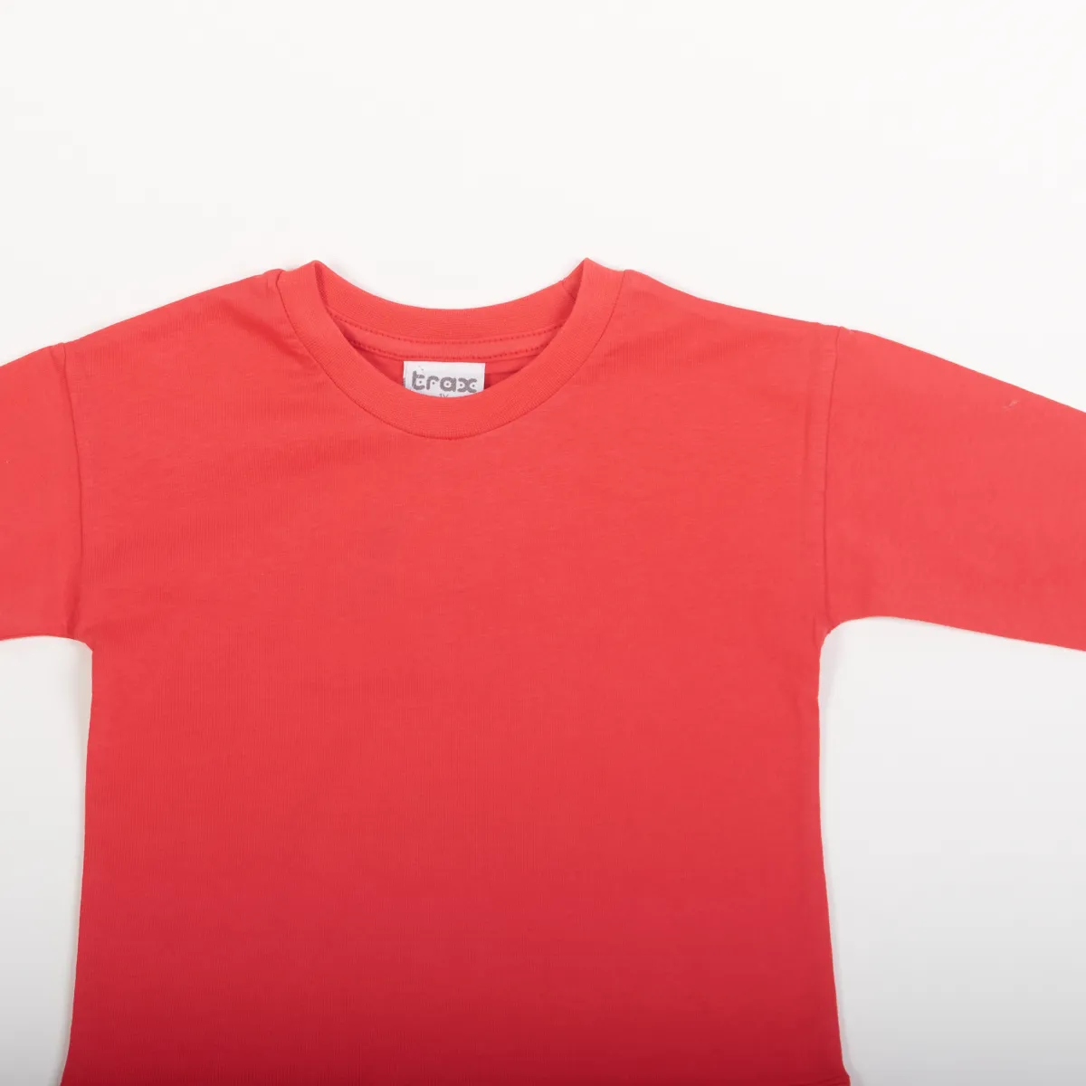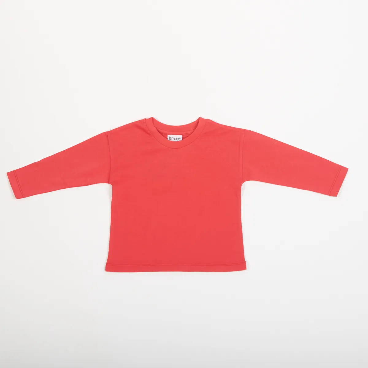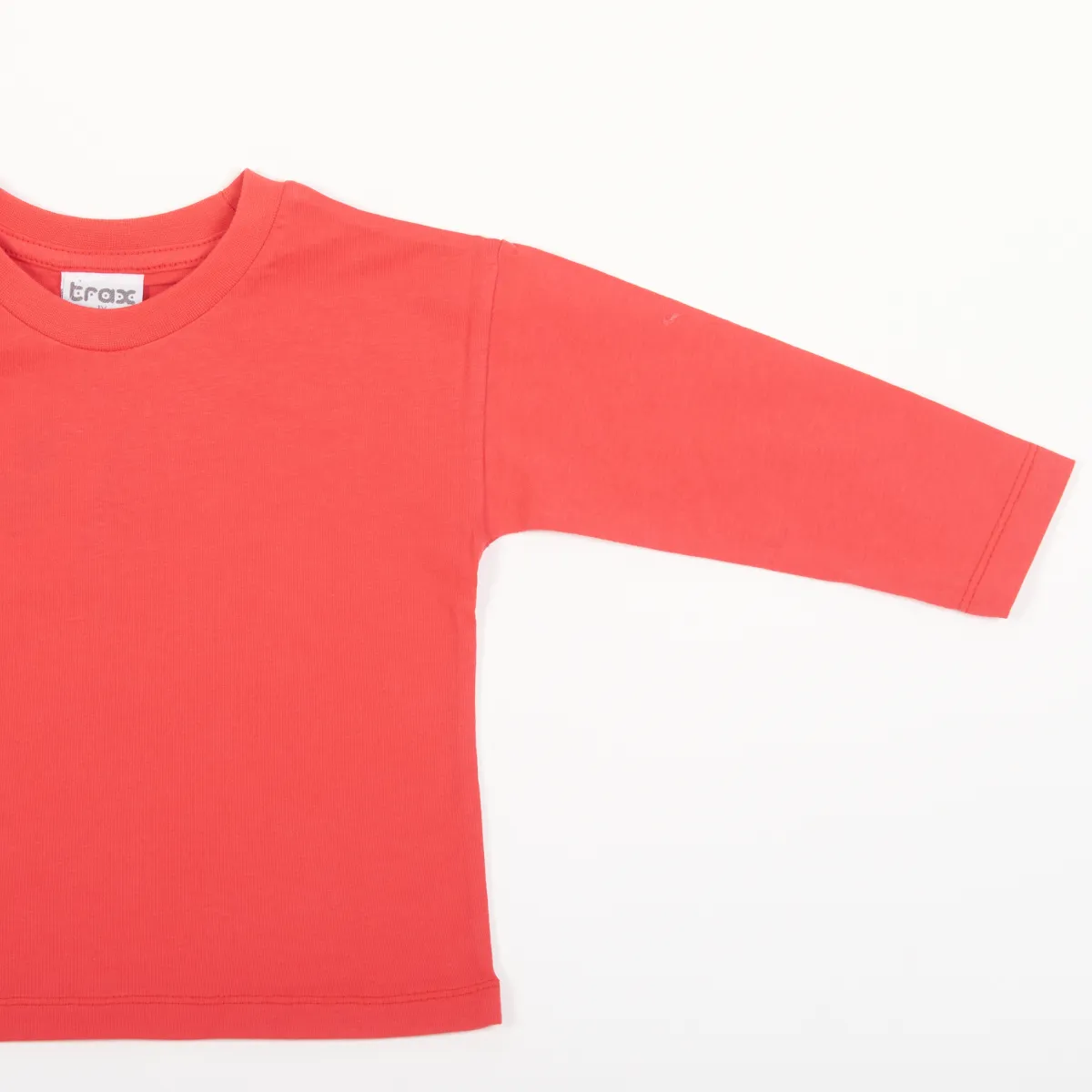 Βασική μακρυμάνικη μπλούζα Trax για αγόρι από 100% βαμβάκι. Διαθέσιμη σε κόκκινο, μπλε και λευκό — ιδανική για κάθε μέρα και εύκολους συνδυασμούς.
