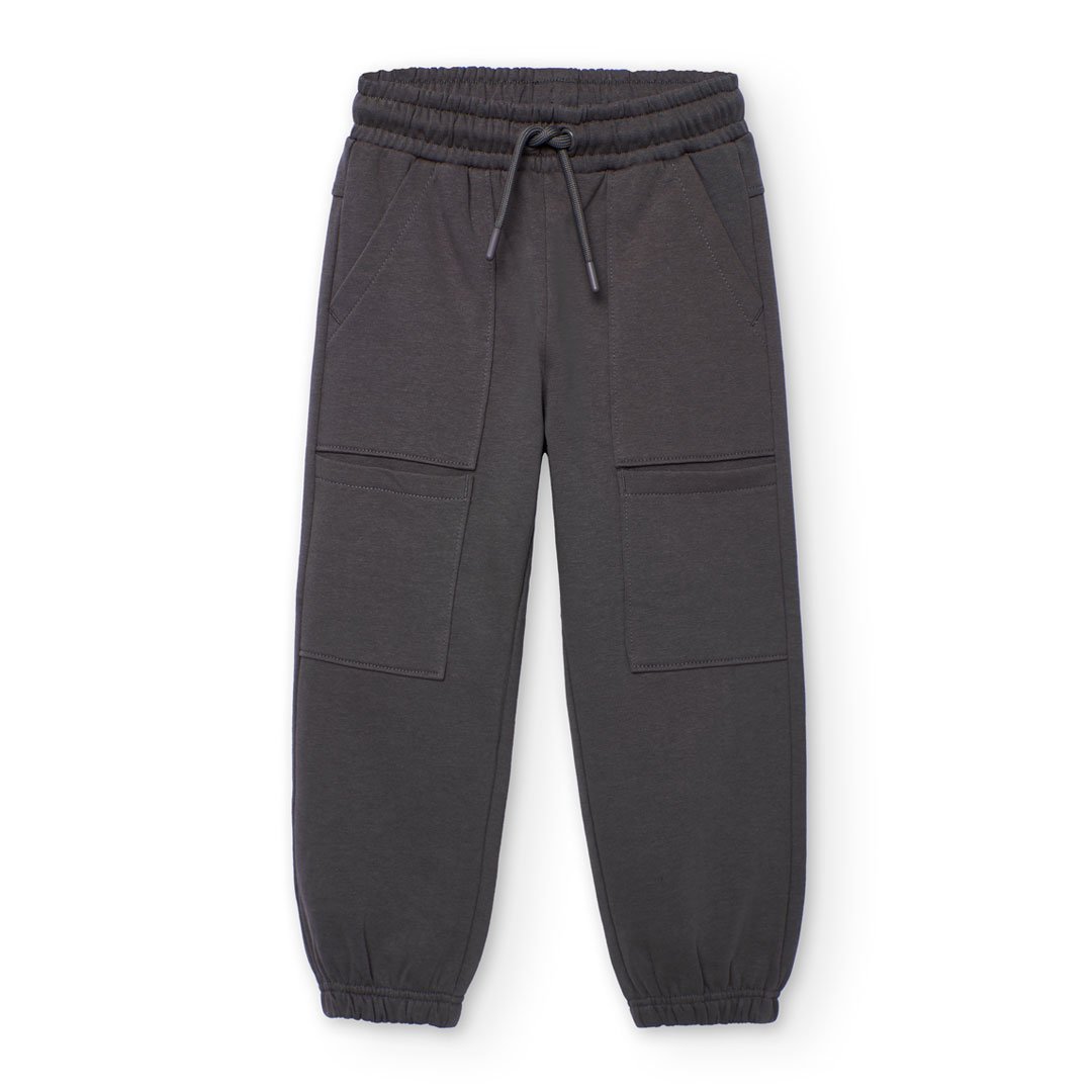 Παιδικό παντελόνι φόρμας Boboli για αγόρια σε γκρι χρώμα. Από 100% βαμβάκι, με πρακτικές τσέπες και κορδόνι στη μέση για άνετη, καθημερινή εφαρμογή.