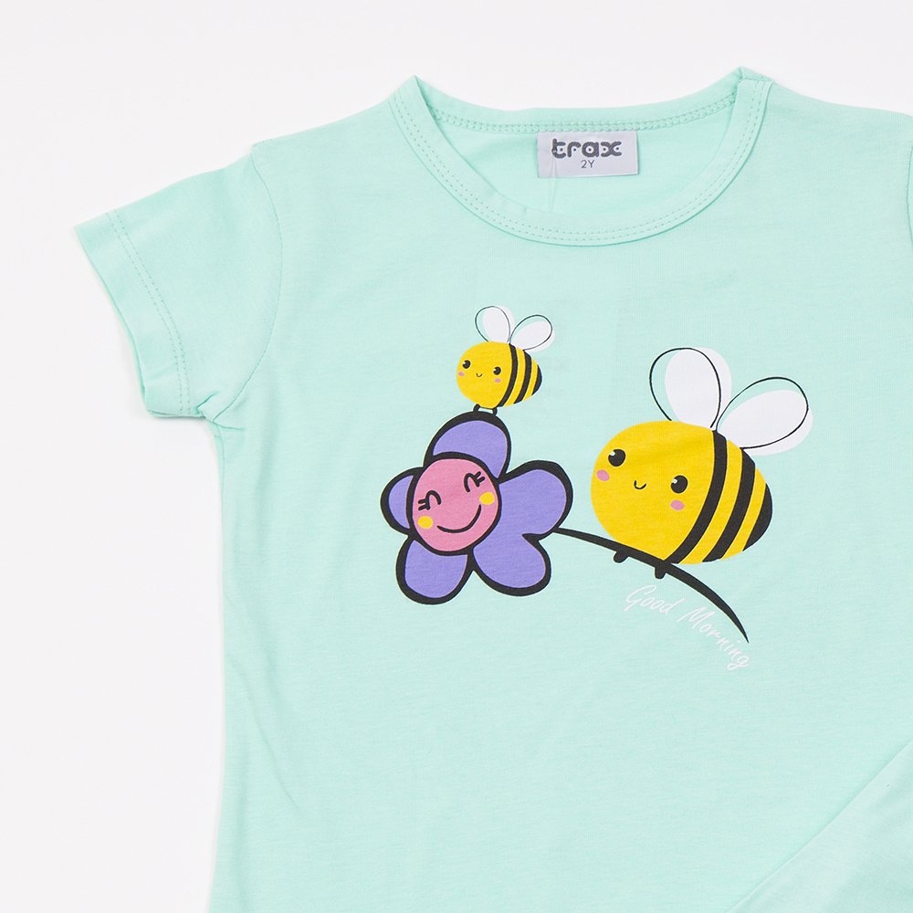 Περιλαμβάνει μπλουζάκι σε απόχρωση μέντας με χαριτωμένο σχέδιο μέλισσας και λουλουδιού.