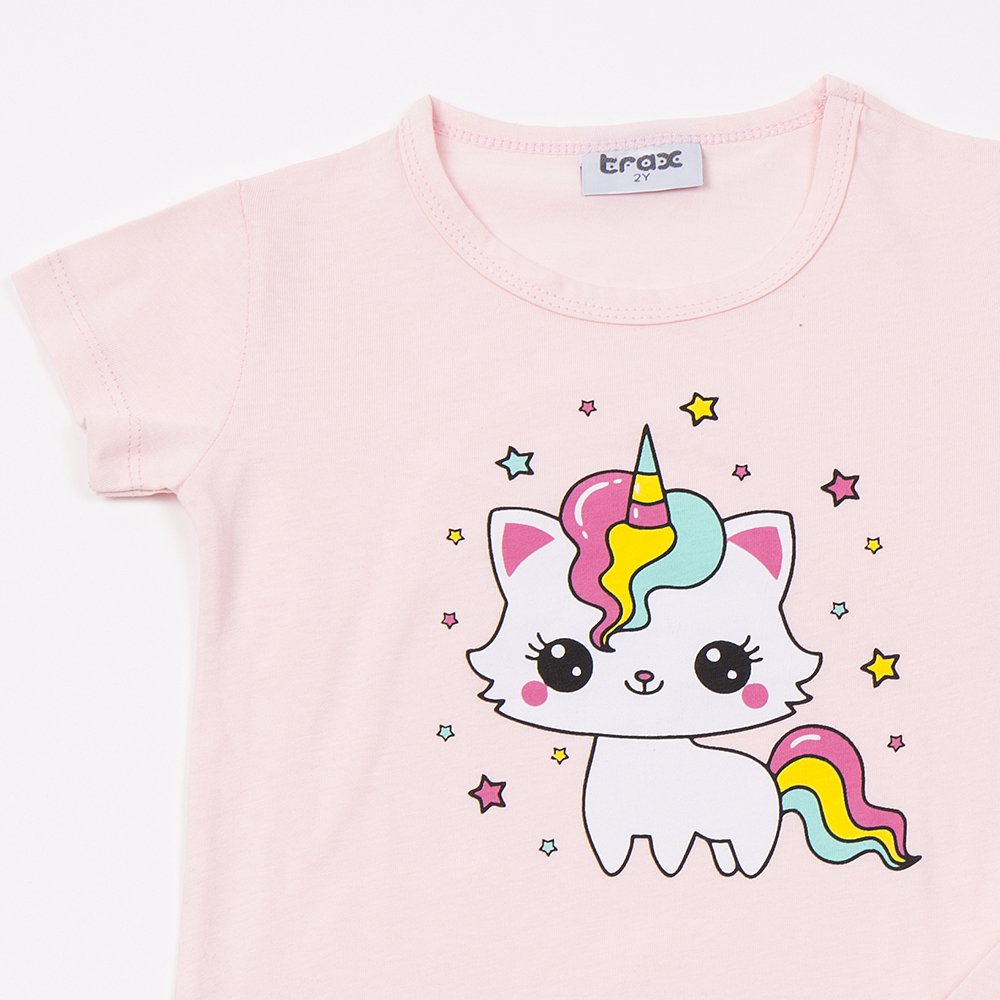 Περιλαμβάνει ροζ μπλουζάκι με χαριτωμένο σχέδιο μονόκερου και πολύχρωμες λεπτομέρειες.