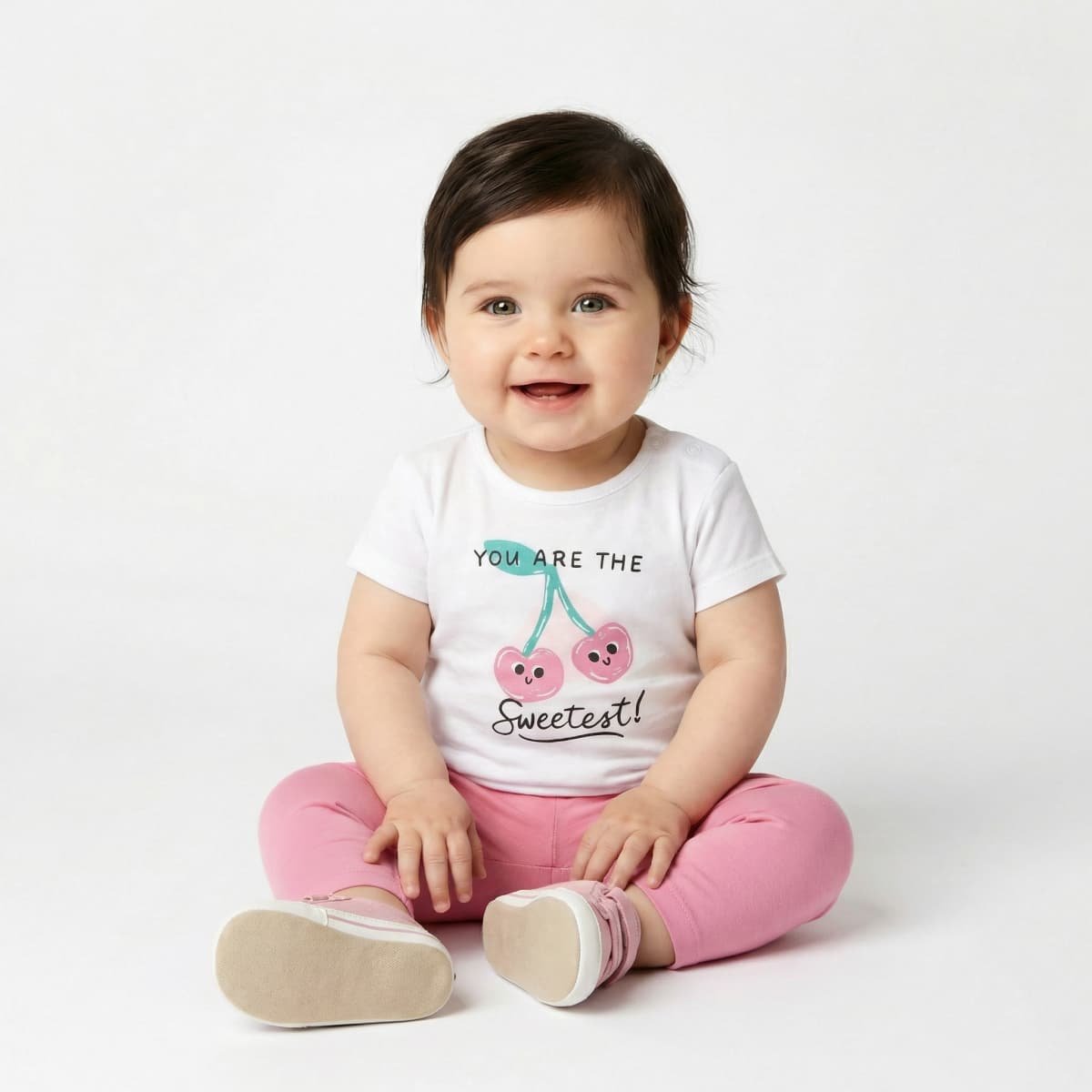 Το ροζ σετ κεράσια είναι μια γλυκιά και άνετη επιλογή για καθημερινές εμφανίσεις με χαρούμενο ύφος.