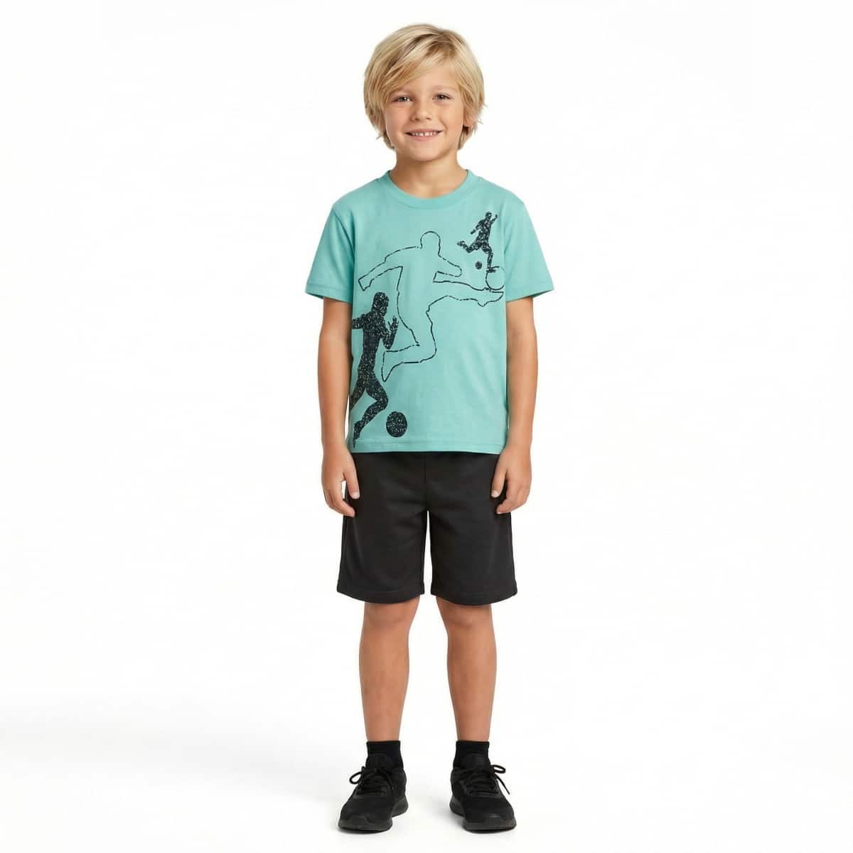 Σετ Trax για αγόρι με μπλούζα σε απόχρωση μέντας, football print και μαύρο σορτς για άνετο καθημερινό sporty στιλ.