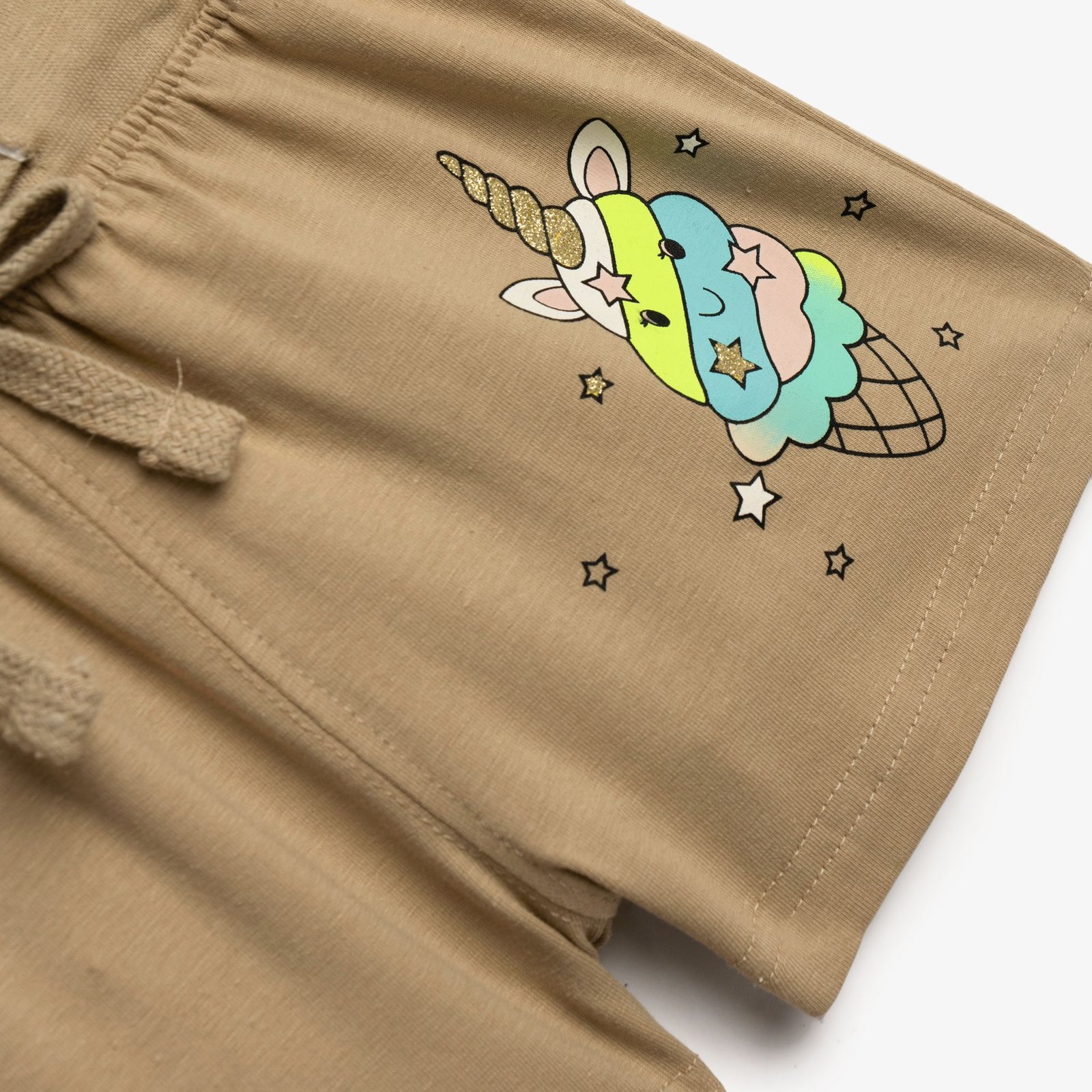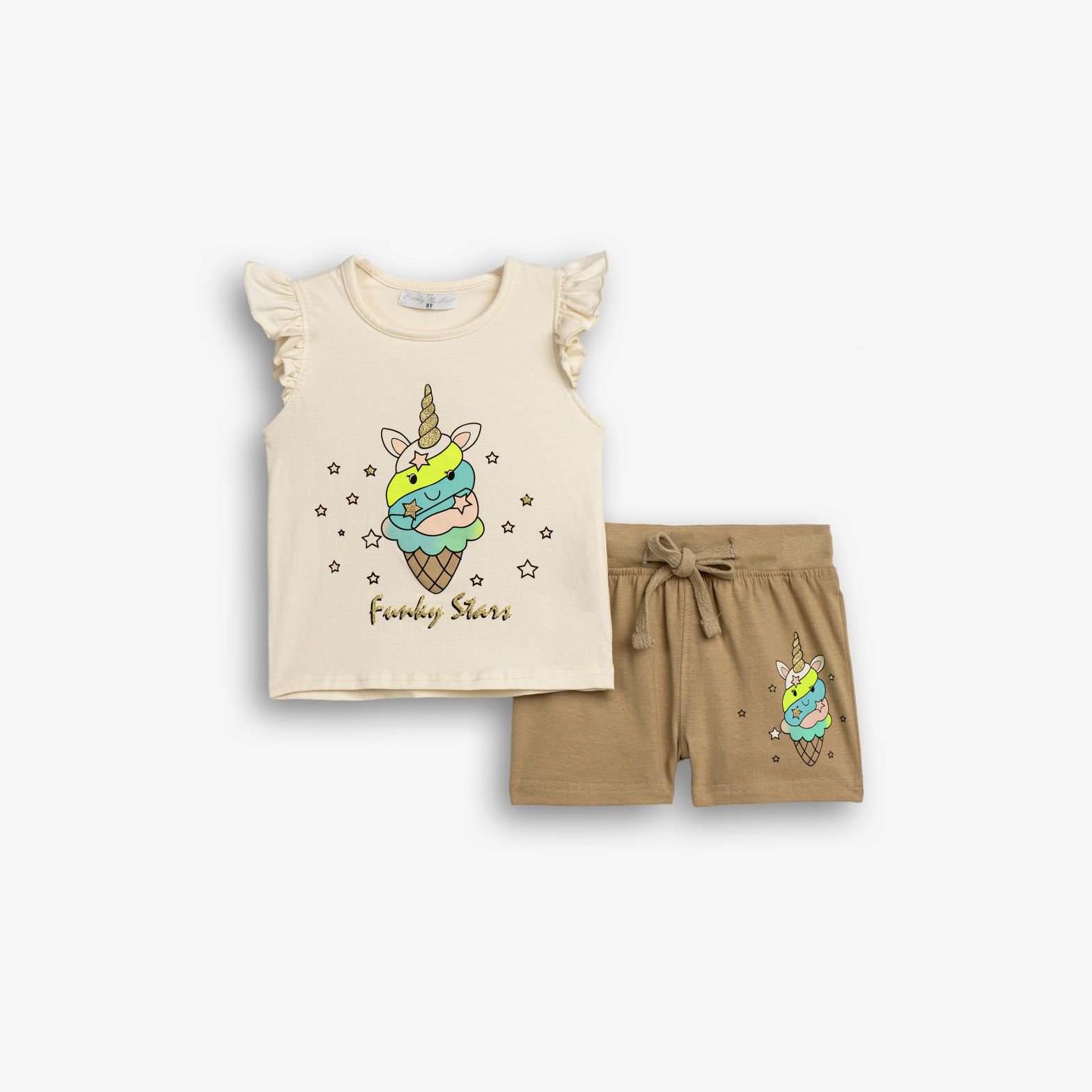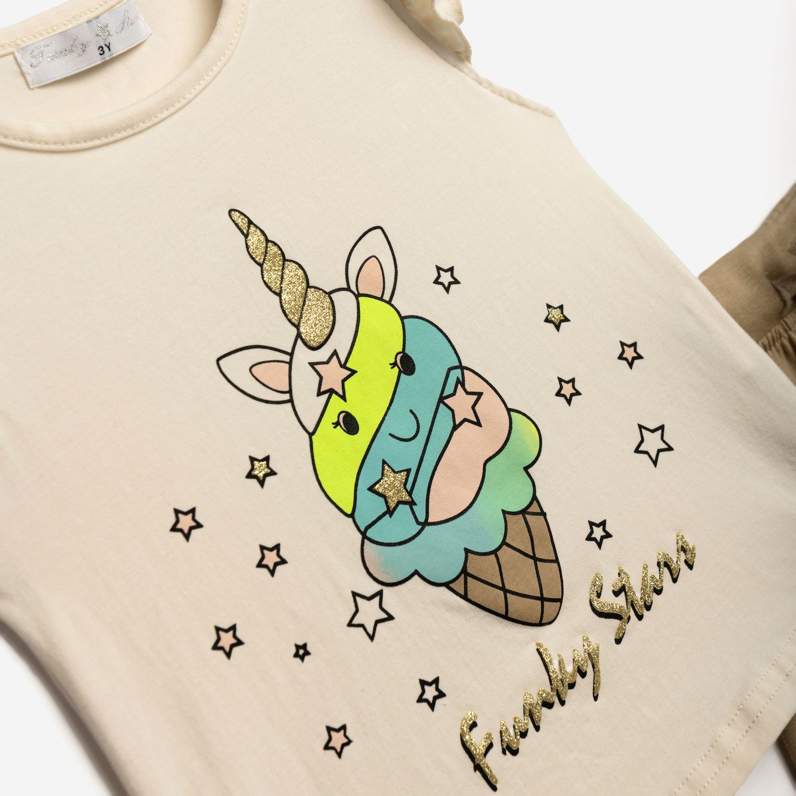 Σετ Αμάνικη Μπλούζα & Σορτς Κορίτσι Funky Stars “Unicorn Ice Cream” – Εκρού/Μπεζ