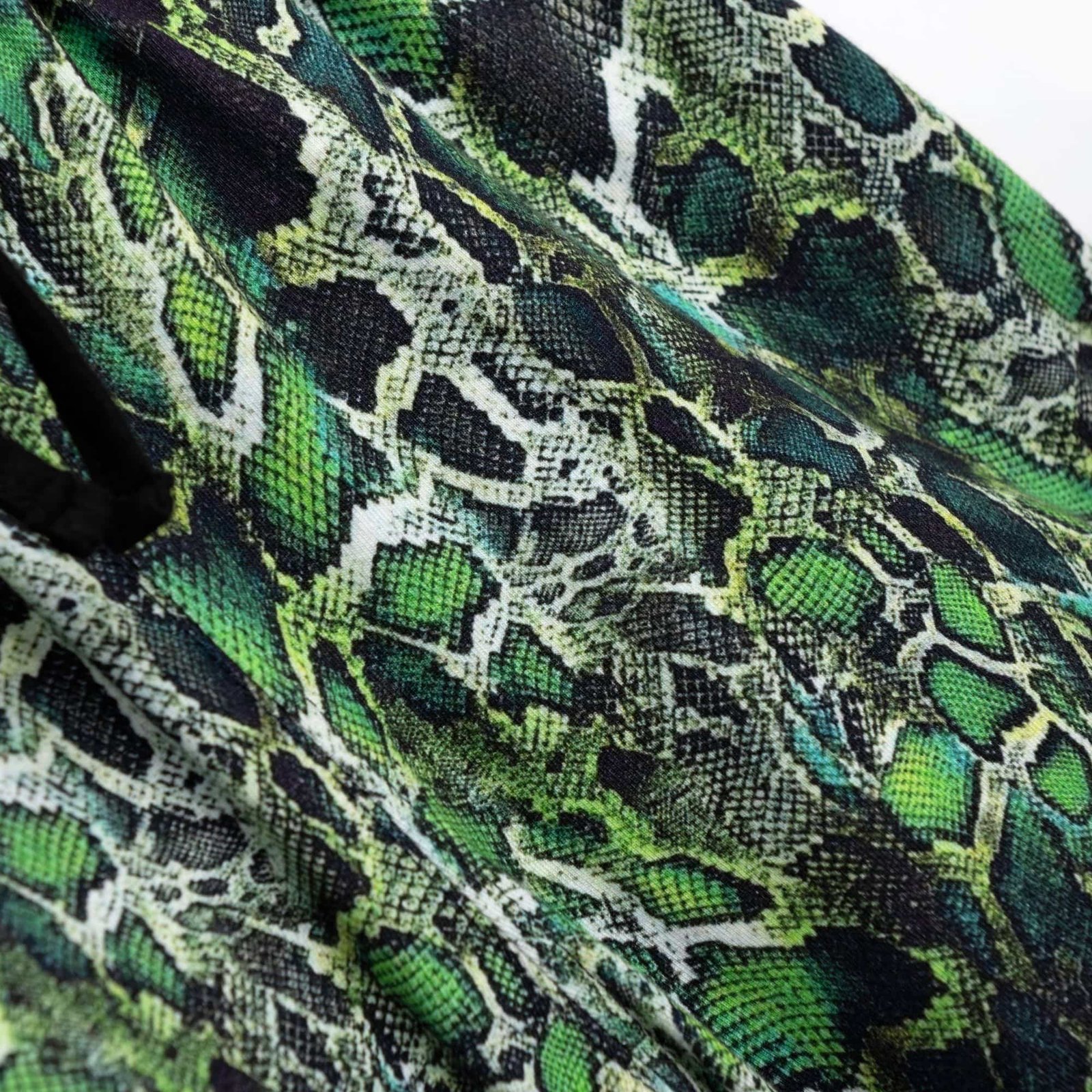 Αποτελείται από μαύρο αμάνικο τοπ και σορτς με ιδιαίτερο snake print σε πράσινες αποχρώσεις.