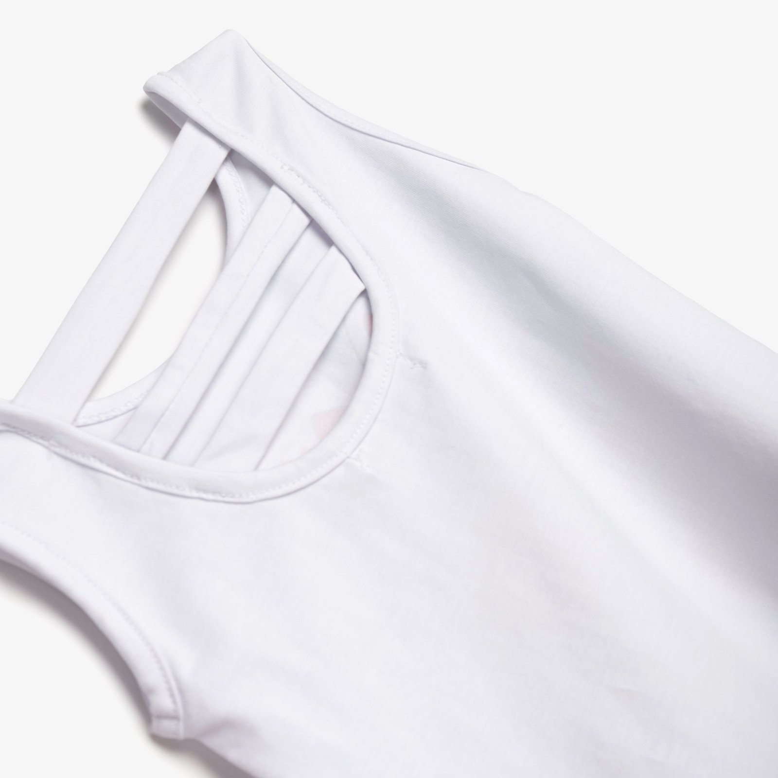 Περιλαμβάνει λευκή αμάνικη μπλούζα με super χαριτωμένο print γατούλας που κρατά καρπουζάκι, με καρδούλες και λαμπερές λεπτομέρειες.