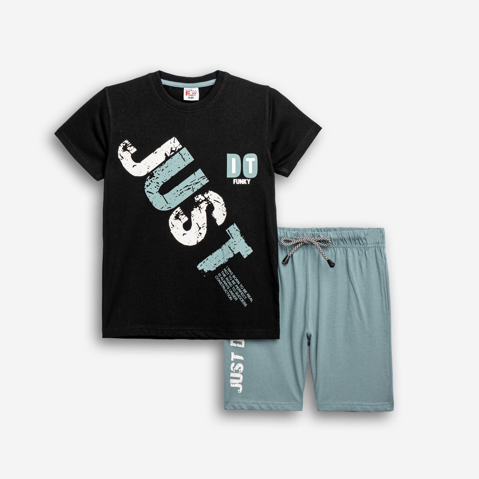 Σετ Μπλούζα & Βερμούδα Αγόρι Funky “Just” – Μαύρο/Σιέλ