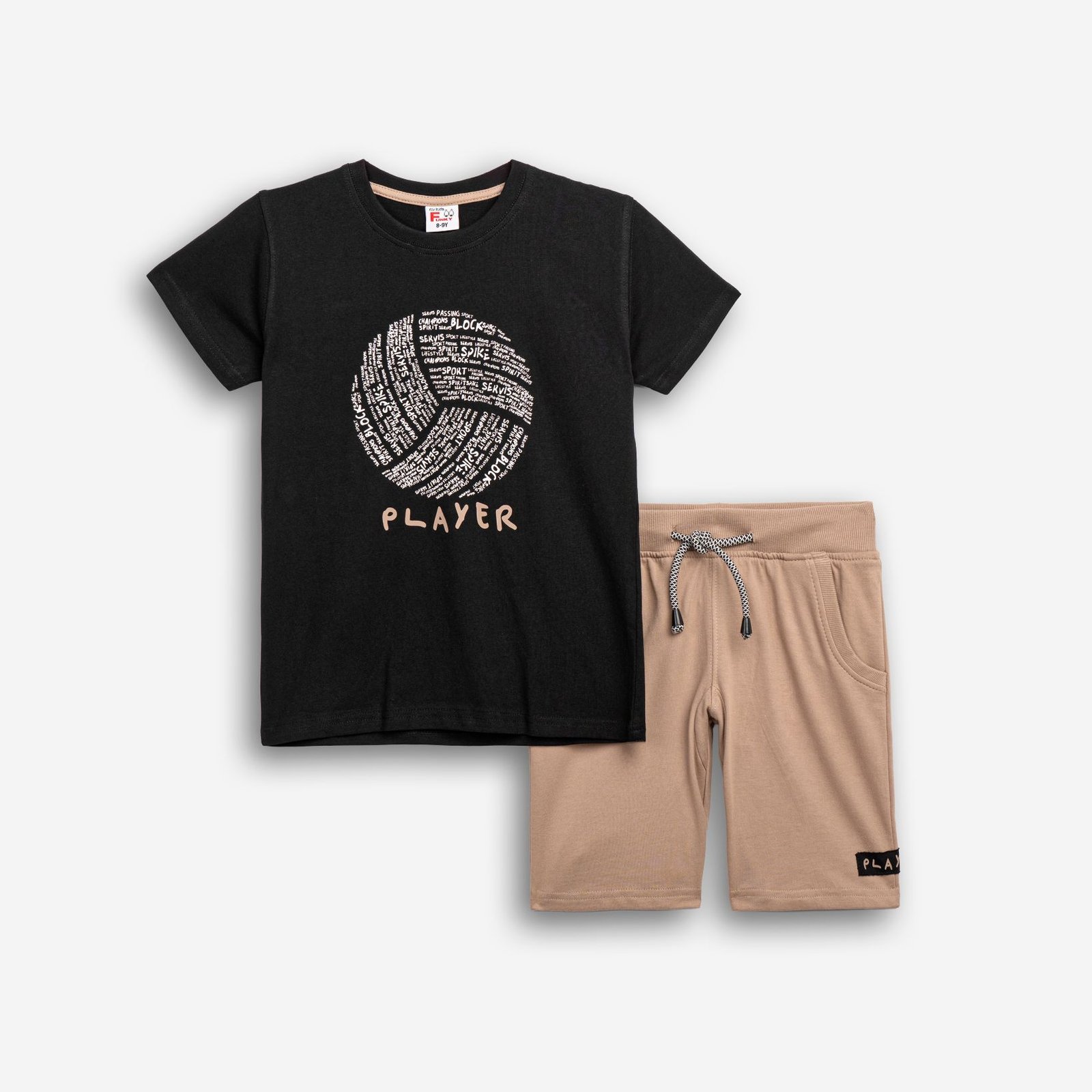Σετ Μπλούζα & Βερμούδα Αγόρι Funky “Player” – Μαύρο/Μπεζ