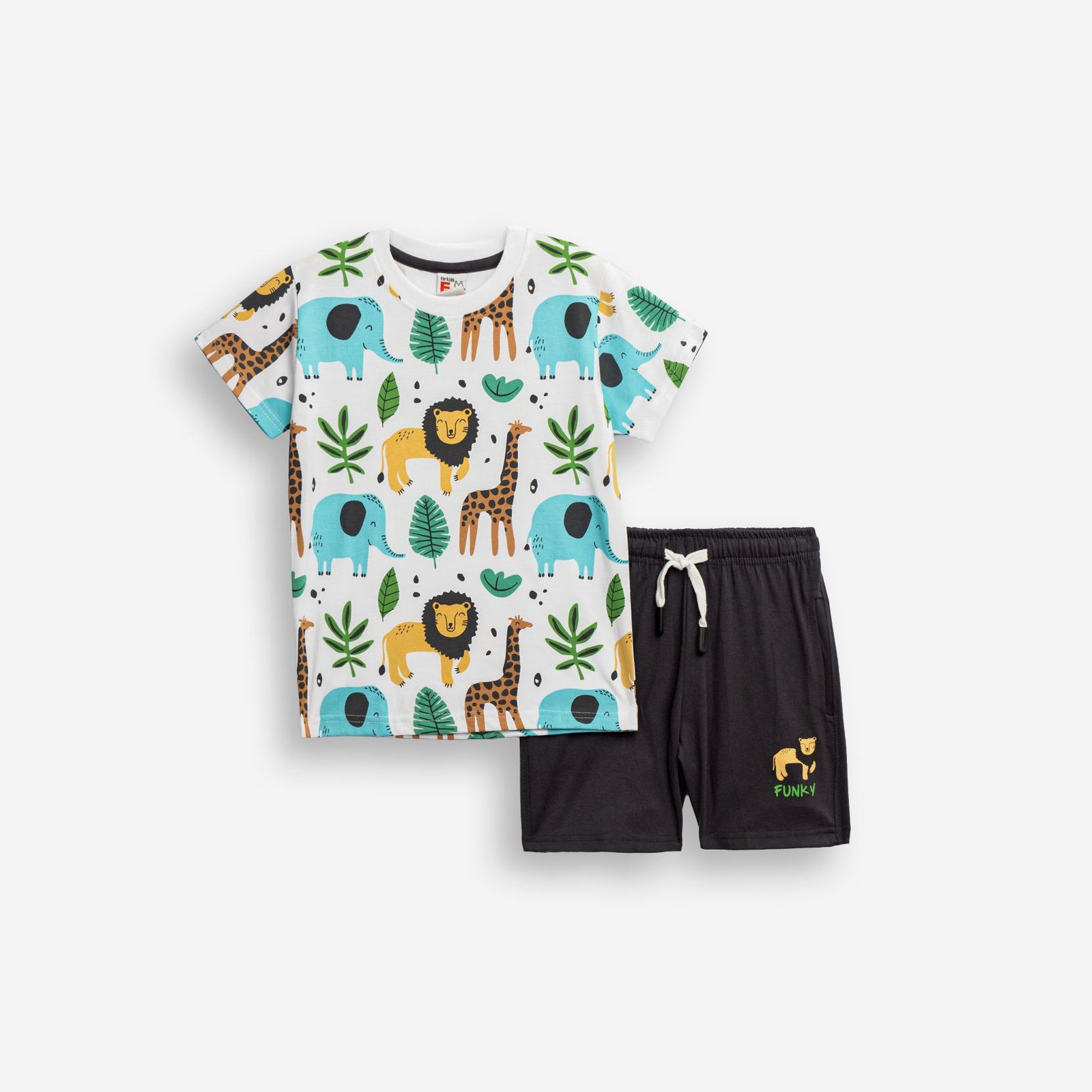 Σετ Μπλούζα & Βερμούδα Αγόρι Funky “Safari Animals” – Λευκό/Ανθρακί