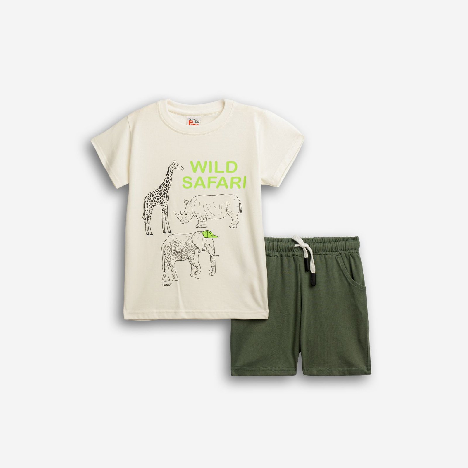 Σετ Μπλούζα & Βερμούδα Αγόρι Funky “Wild Safari” – Εκρού/Χακί