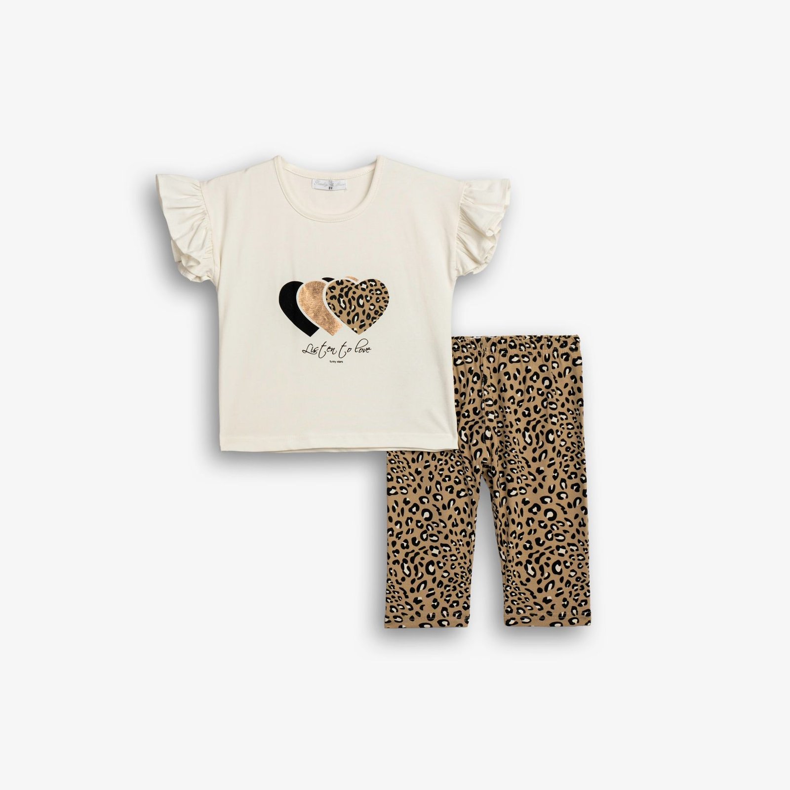 Σετ Μπλούζα & Κολάν Κορίτσι Funky “Hearts Leopard” – Εκρού/Λεοπάρ