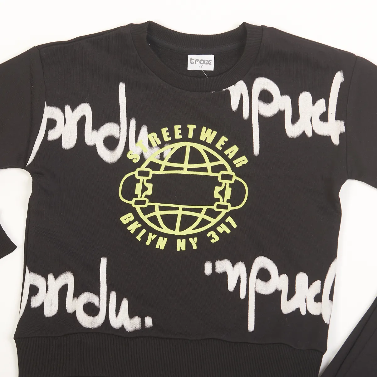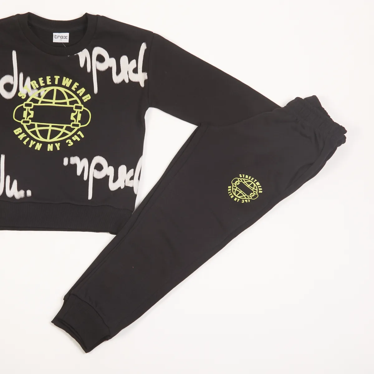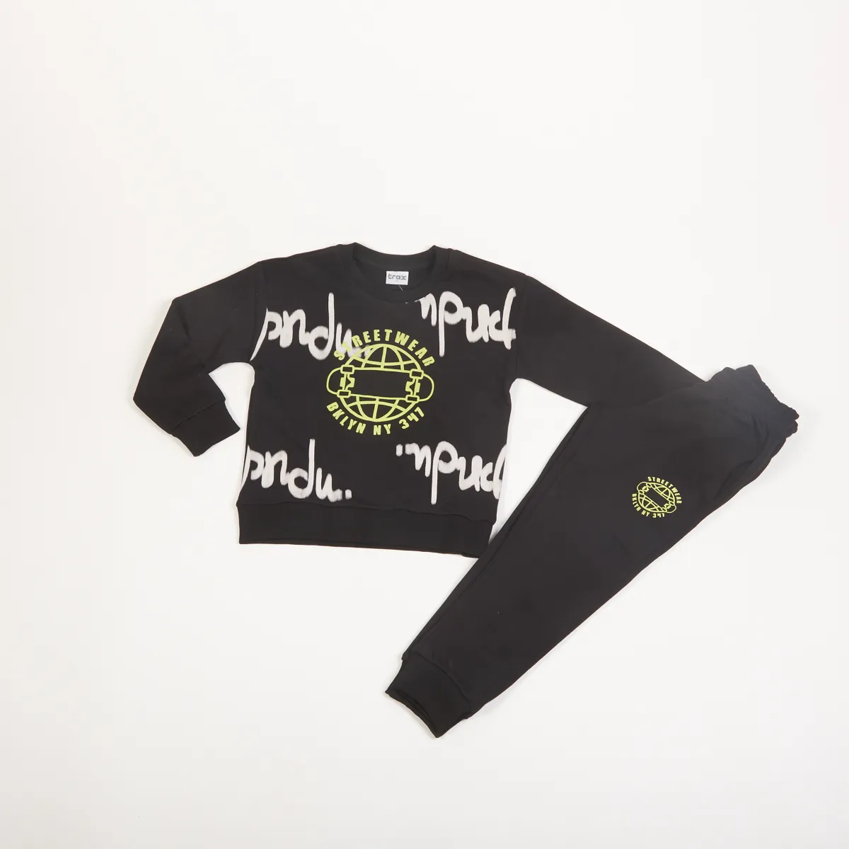 Σετ φούτερ Trax “Streetwear” για αγόρι. Από 80% βαμβάκι και 20% πολυεστέρα, με neon lime τύπωμα και urban στυλ για άνεση και καθημερινή εμφάνιση με χαρακτήρα.